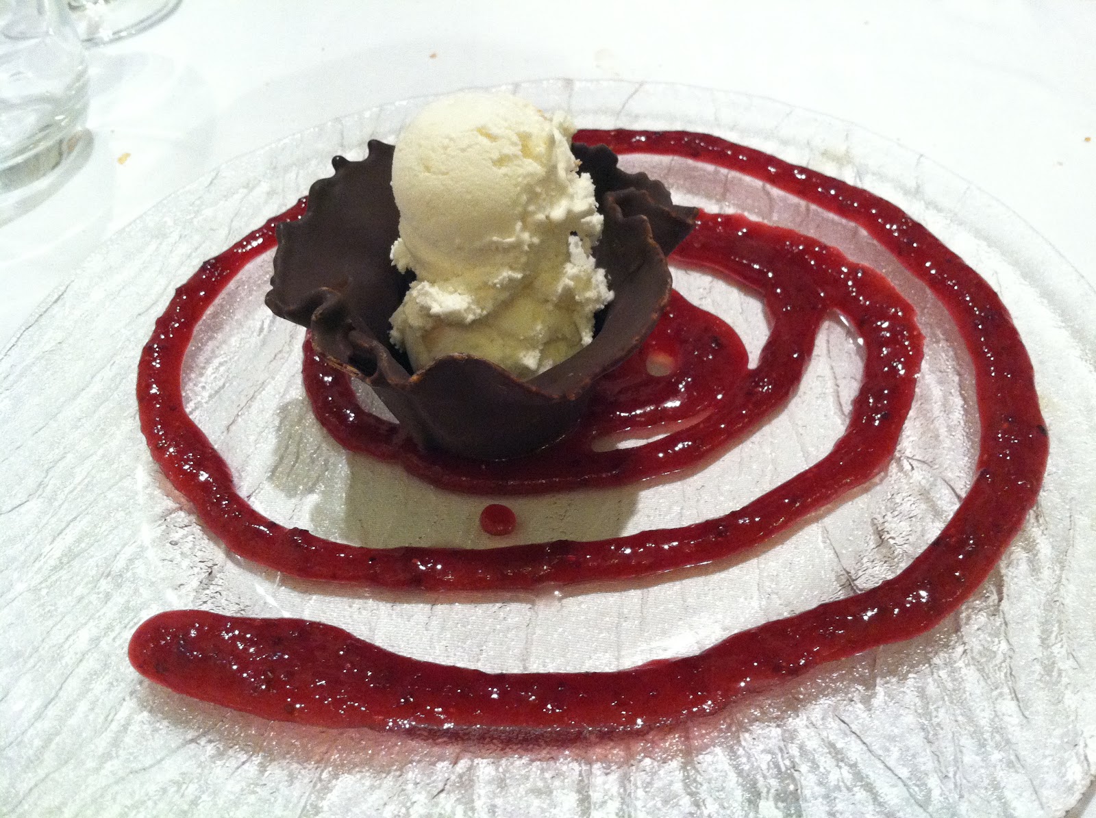 With all of this walking, food is more than necessary. The first night, we went to a lovely restaurant called Pitarra. It has supposedly some of the best paella in the city. Of course, that was what I ordered and Kenan got Tuna with potatoes. The two were shared and it was so good. We ordered a small bottle of wine for dinner and afterwards, I truly had the best dessert in Europe. (I said this last week...) It was coconut ice cream (real coconut shreds inside) served with a chocolate lampshade (basically a chocolate bowl with a wafer middle) and a rasberry swirl. But no that was apparently not enough when we were offered a pitcher of Sangria "on the house". Hey, we'll take it. The owners and waiters could not have been more nice and I recommend the restaurant to anyone who goes. As other food excursions go, the St. Josep Market is jam packed with colorful fruits and vegetables and fresh meat and fish.