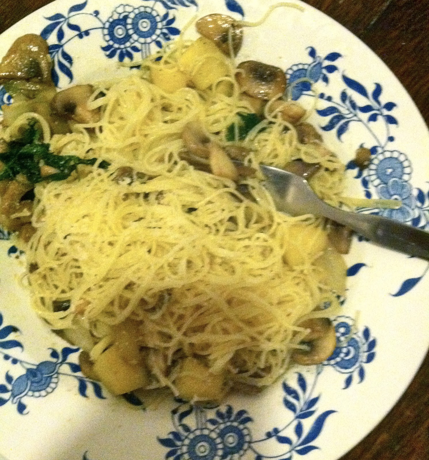 I will tell you we have been eating enough this week. I got a huge package of mushrooms at the store last weekend, so basically everything I have been eating has contained a little bit of olive oil, a little bit of herbs, and a little bit (or a lot...) of mushrooms.