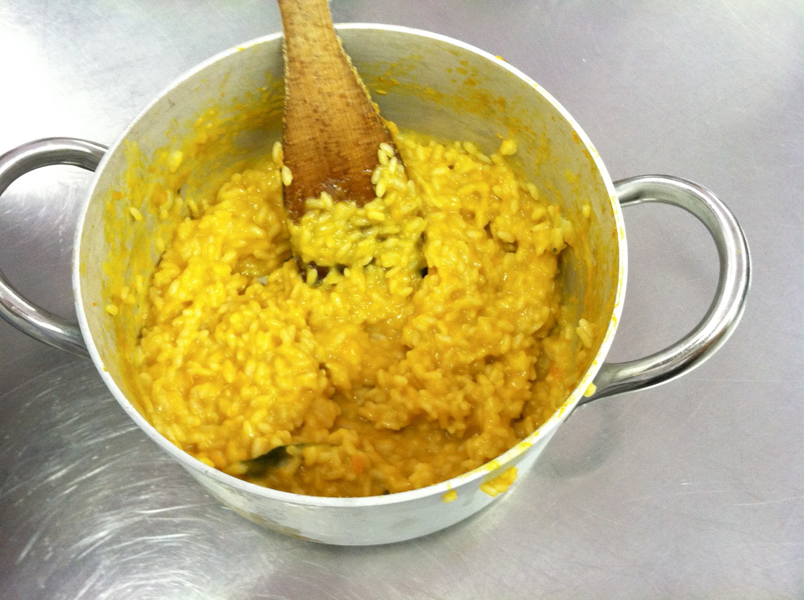 In the end, this was probably (if not the best) one of the best risotto dishes I have ever had. The spinach one was my favorite but with the bitter taste of the spinach and the sweet of the pumpkin they really tasted great served together!! Our professor showed her presentation skills once again and this was the final product! It was incredibly delicious; my mouth is watering just thinking about it. If I had to choose to make one-- I would probably choose the spinach, but both are worth trying! Also, everything is in grams so converting it to american measurements would probably be helpful to start out with. Enjoy!