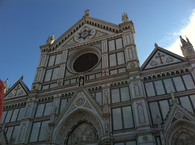 Here was when I was blown away (if I could have been any more blown away): Dante, Michelangelo, Machiavelli, and Galileo (as well as many others) all had burial monuments in Santa Croce. I was surprised that both Dante and Galileo were both buried in a church as Dante was exiled and Galileo was a scientist (considering the whole science vs. religion debate-- won't into those waters today...). But Danta is actually buried in Ravenna, Italy and only has a monument for him, as Florence was his home city. As time went on, and people, including the Church discovered that Galileo's findings were true, some of his remains including his middle finger (hmm... is this saying something?) and his spine were placed in Santa Croce.