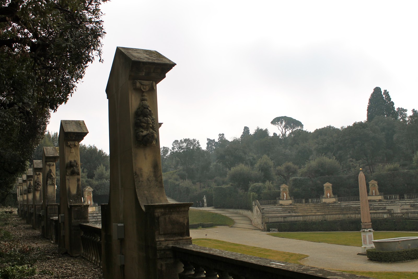 Afterwards, fog still rolling through the city, we set off to see the Boboli Gardens. Best idea. They were absolutely gorgeous and even with the cloudy skies, the pale green of the trees and water shone brilliantly through. We meandered through different parts of the garden, and as we headed to the far right gardens, the sun peaked through the clouds and the day was instantly beautiful. I had thought the gardens were nice, but boy did they sparkle as the sun broke through the canopy of trees we walked under. I had not been to the Boboli Gardens yet, and I now know I will definitely be back. Every turn was a different journey! After the gardens, stomaches grumbling, we headed to Gusta Pizza to try some of the best Pizza in Florence. Arriving right after school got out, we had to wait in line for a little while but the food was, as usual, very worth it.