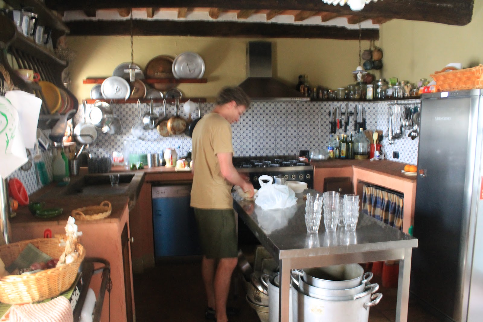It was time to meet Federico the owner of Agricola Biologica Nico, who kindly offered to drive us to the farm because we lacked a car. Upon arrival and after an semi-awkward car ride of trying to make conversation when none of fully knew the language of the other, we arrived at a beautiful home in the middle of the Tuscan countryside. They had a basket-weaving class in session when we arrived and Austin and I decided that there was no cross cultural divide in granolas, as everyone there would be welcomed with open arms in Asheville, NC. The first day there was spent exploring around the home, having the neighbors get mad at us (didn't know there were neighbors?), and a lot of reading. We decided to have a nice dinner there (because we couldn't go anywhere else...) in their restaurant "Il Giusto Gusto". Elena (the wife) prepared the best and most filling dinner I have ever had. We started eating at 8:30 and didn't stop until 11. She served lettuce soup with croutons and olive oil (despite how it sounds, it was SO good), homemade gnocchi with cauliflower and olive oil, a type of hard cheese and honey, a baked cheese custard with salad, and for dessert a cream pie with chocolate. I actually couldn't move afterwards, but it was all so worth it. I have also decided to design my kitchen off of there, as it was the most beautiful room I have ever seen. Very full and sleepy, we headed to bed.